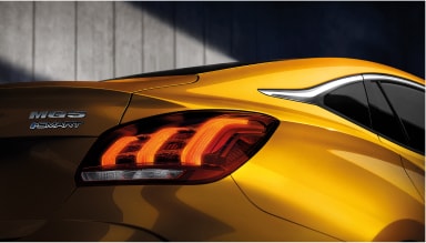 Đuôi xe MG5 nổi bật với thiết kế ấn tượng, đặc biệt là cặp đèn LED tạo hình dạng ba vạch kéo dài sang hai bên hông, gợi nhớ đến các mẫu xe của Peugeot. Đây là điểm nhấn giúp đuôi xe trở nên nổi bật và dễ nhận diện.